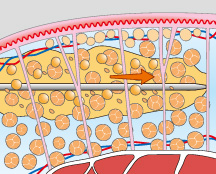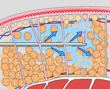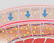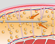 皮膚と筋肉の間にある索状組織の構造を残して、脂肪組織のみを除去できるベイザー脂肪吸引。ダメージを受けずに残った索状組織が自然に縮むことで、皮膚を引き締める効果があるとされています。